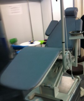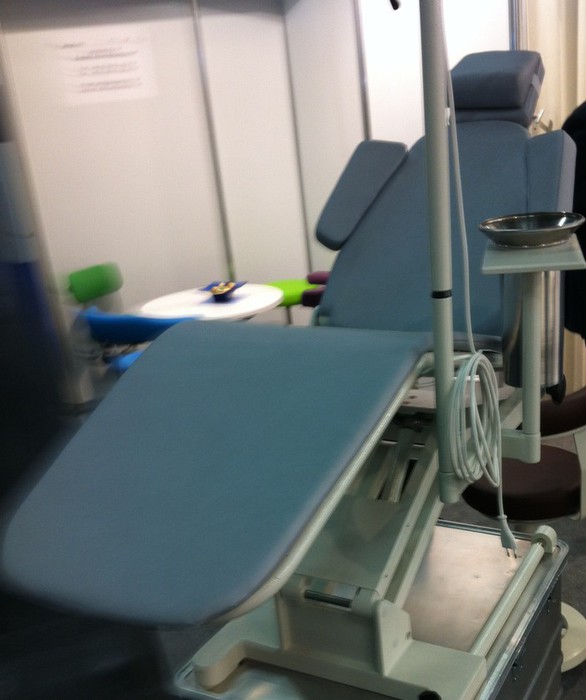 Die transportablen Liegen sind mit einer Spuckschale ausgestattet und verfügen über ein integriertes Beleuchtungssystem. Ein ebenfalls transportabler Arztstuhl gehört zur Ausstattung der transportablen Liege. Der Aufbau erfolgt im Alten.- und Pflegeheim in der Regel in einem zentral im Haus gelegenen Pflegebad, welches sich normalerweise in Größe und Ausstattung sehr gut zur Einrichtung einer mobilen Praxis eignet. Im gesamten Ablauf wird eine durchgehende Hygienekette gewährleistet, die mobile Praxisausstattung wird zudem auf einer speziellen Desinfektionsmatte plaziert. Damit entspricht die mobile Praxis den strengen deutschen Hygienevorschriften.